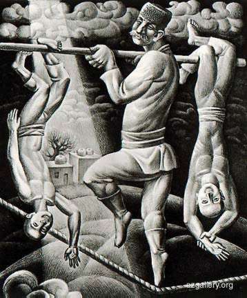 Arif Alasgarov 13.13 "Ropedancers", 1982 Autolitography, 60x50 cm Tel: (99-412) 94-48-46 (home), 76-06-23 (studio) Baku, Azerbaijan