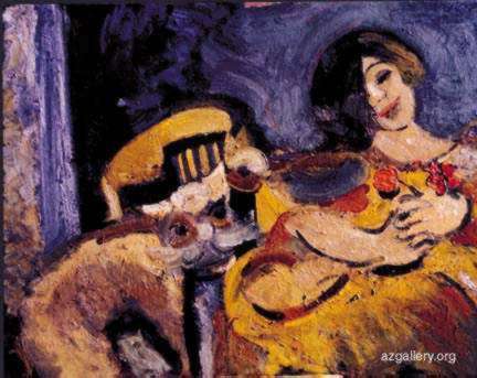 Museyib Amirov 16.08 "A Girl and a Cat" Oil on canvas, 80x60 cm Tel: (99-412) 31-27-87, 39-60-41 Baku, Azerbaijan