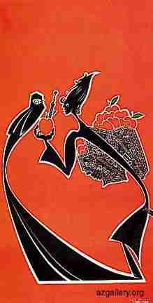 Elturan Elturan 30.02 Illustration to Azerbaijan folk song "My lass, whose are you?", 1969 Applique work on paper, 25.5x14.5 cm Tel: (99-412) 92-75-32 Baku, Azerbaijan