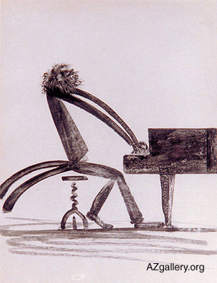Elturan 30.14 From the series "Piano Player", 1968 Water color on paper Tel: (99-412) 92-75-32 Baku, Azerbaijan