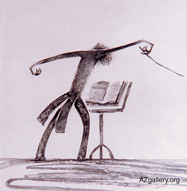 Elturan 30.17 From the series "Conductor", 1968 Water color on paper Tel: (99-412) 92-75-32 Baku, Azerbaijan