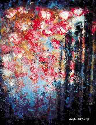 Bahram Khalilov Bahram Khalilov 52.04 "Through The Garden Door" Oil and enamel on mat board, 20"x12 1/2" Baku, Azerbaijan