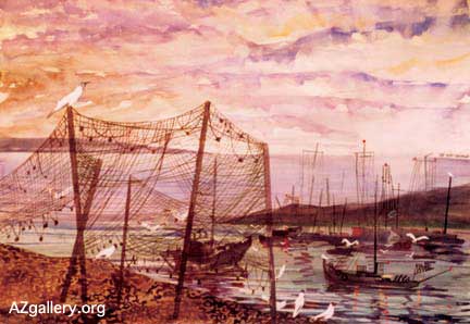 Mir Teymur 153.36 "Fishing Jett" Water Colors 60 x 80 Baku, Azerbaijan