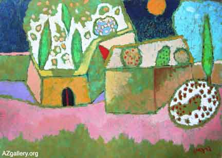 Vugar Muradov 70.107 Garden with a yellow fence 61 x 86 cm Oil on paper, 2002