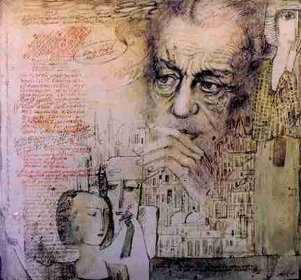 Adil Rustamov 92.10 "Turkish Poet-Najib Fazil Gisakurek", 1998 Graphics, 40x40 cm Tel: (994-12) 71-75-57 (home), 75-16-30 (studio) Baku, Azerbaijan
